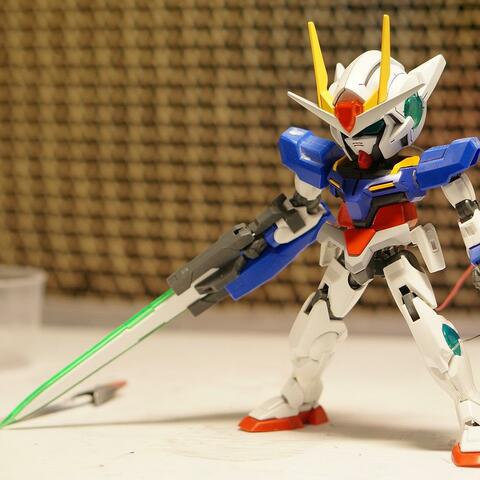 This is a build I started in 2013 by fusing SD & HG 00 Raiser into an extended height SD form factor featuring LEDs, custom subtle colour scheme with a custom acrylic display base and is still yet to be completed